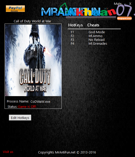 Akhsan07.blogspot.com | Kali ini saya akan membagikan trainer dari game Call Of Duty World At War 1, apa sih trainer ? Trainer atau bisa juga disebut cheat adalah aplikasi atau berupa kode-kode yang dikaitkan dengan game agar game mengalamai perubahan.Trainer/ Cheat itu ada juga yang menambahkan fitur lain dari game, atau biasa kita menyebutnya MOD.😊😊